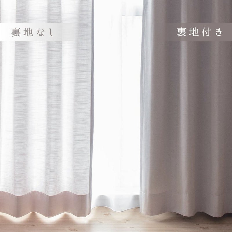淡く光に溶けるような色合いが魅力のカーテンですが、もっとしっかり遮光したい、柄をはっきり見せたい、という方には、オプションで遮光裏地もお選びいただけます。裏地で、1級遮光相当の遮光機能に加え、遮熱や保温効果もプラス。お好みでお選びくださいね。