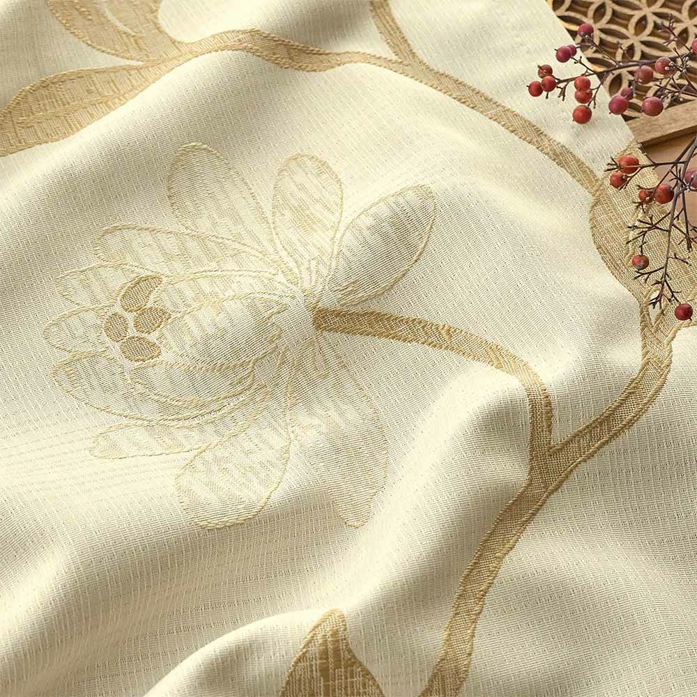 ゆるやかなリズムで咲き誇る大輪の華。繊細なジャガード織りで描かれた華が大胆に広がるカーテンです。流れるような調子で飾られたデザインは、優雅で上品な心地よさを感じられます。伝統的な織物らしい、細やかな技術と麗しい表現に、ついうっとりとします。