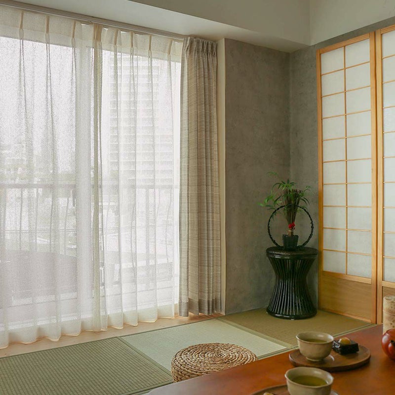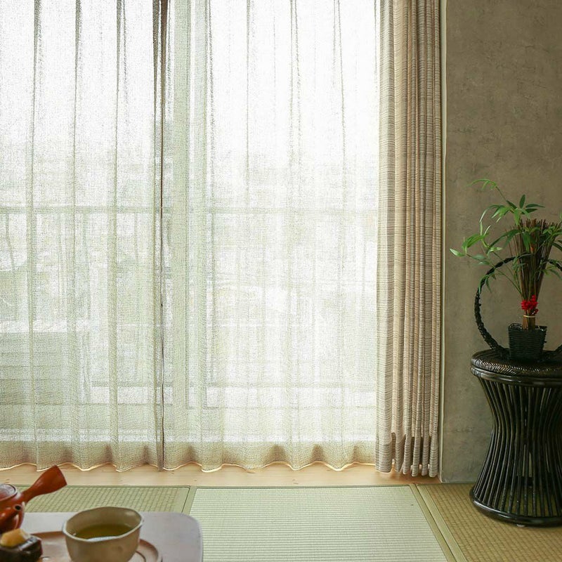 和室によりそう、綿の優しい風合いを楽しめるレースのオーダーカーテン。レース越しの風も光も美しく香しい。おしゃれなレースカーテンでモダンな和室を楽しみましょう。