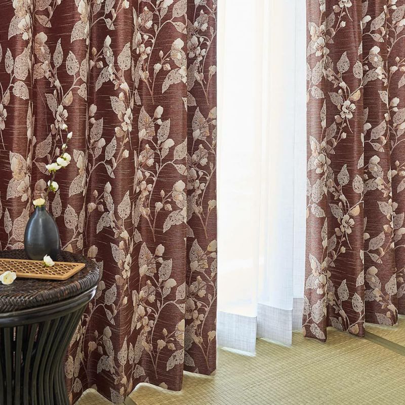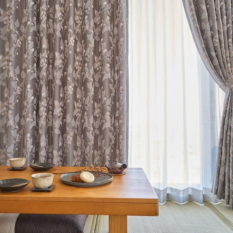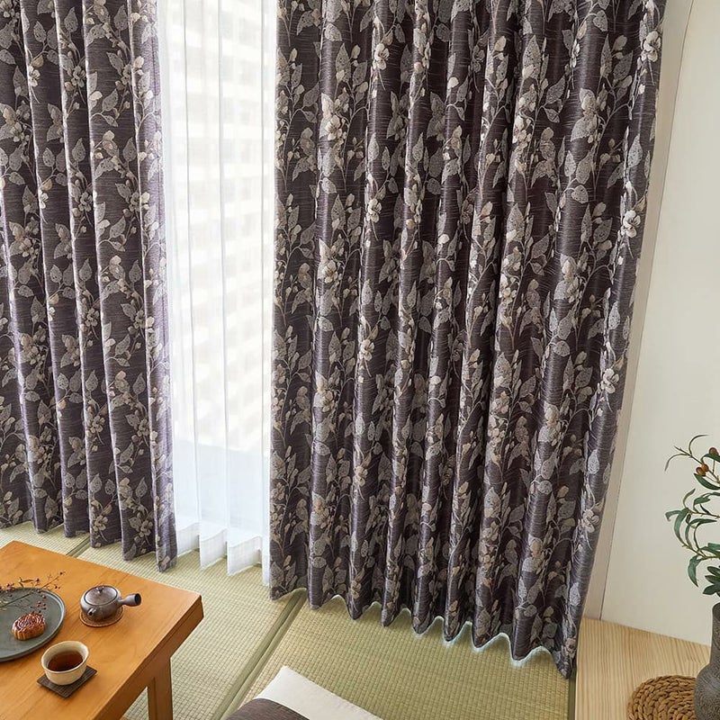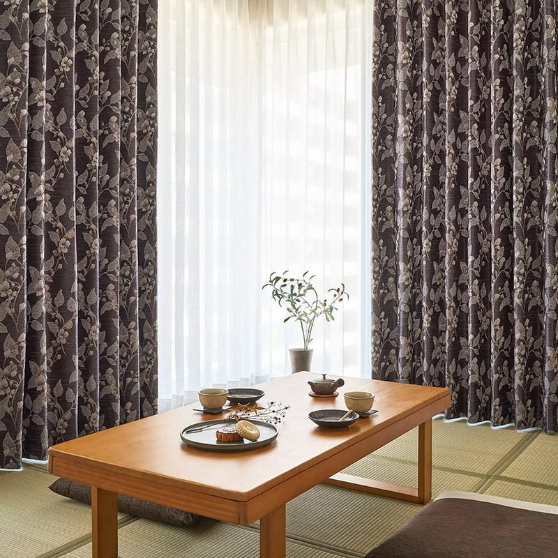 シックな植物柄と深みのある色合いが魅力のジャガードカーテン。その洗練された佇まいは、まさに大人の和室と呼ぶのに相応しい雰囲気へ仕上げるでしょう。上質で味わい深いカーテンが、伝統的な和室という空間に、モダンで新しい風を吹かせます。