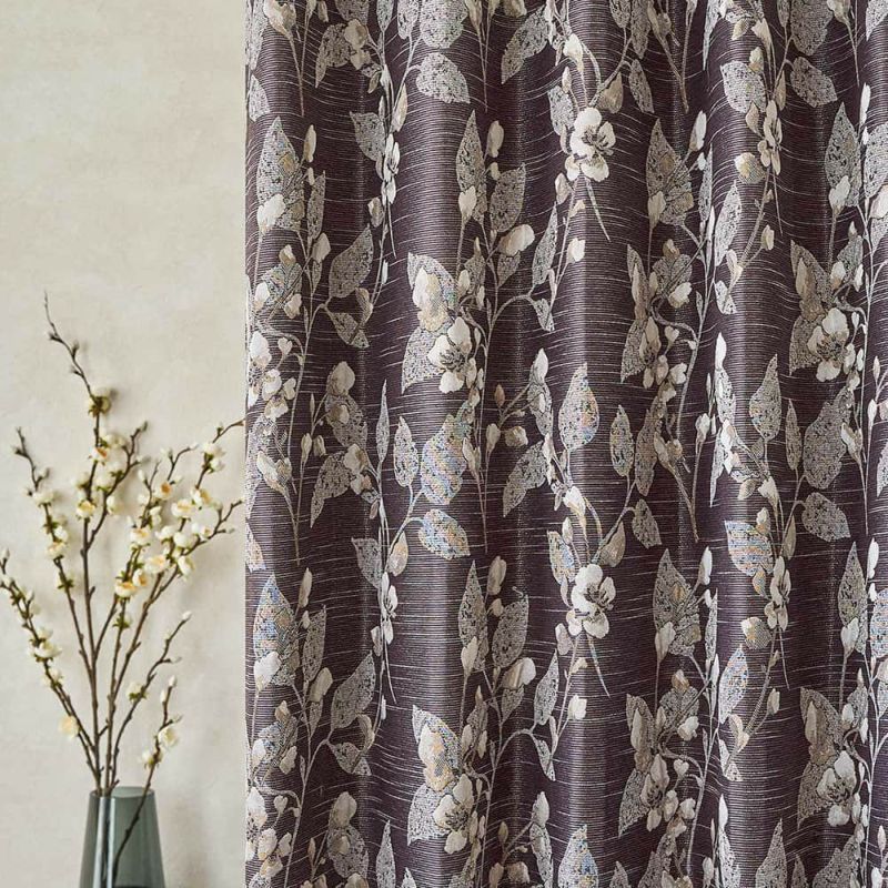 光沢感のある植物柄がシックモダンな印象のジャガードカーテン