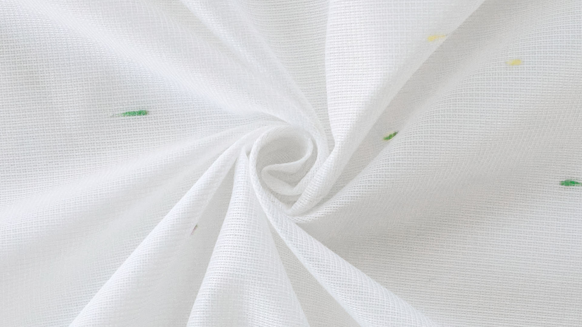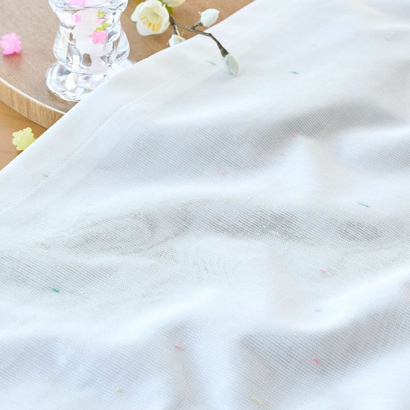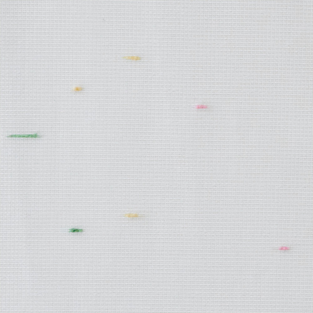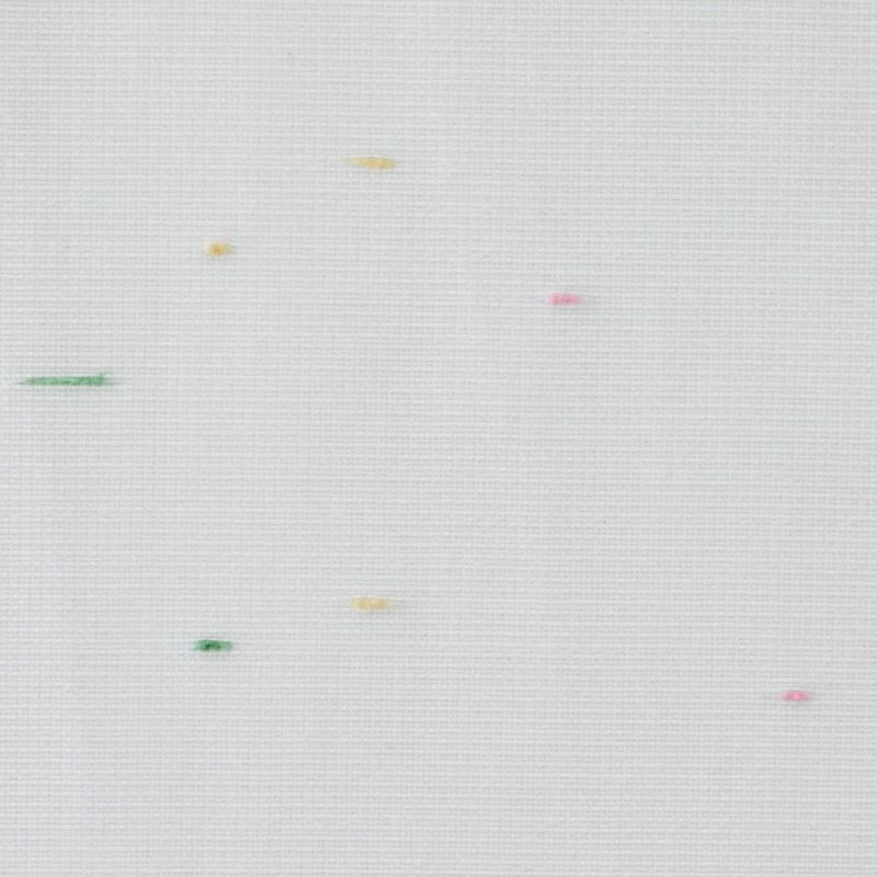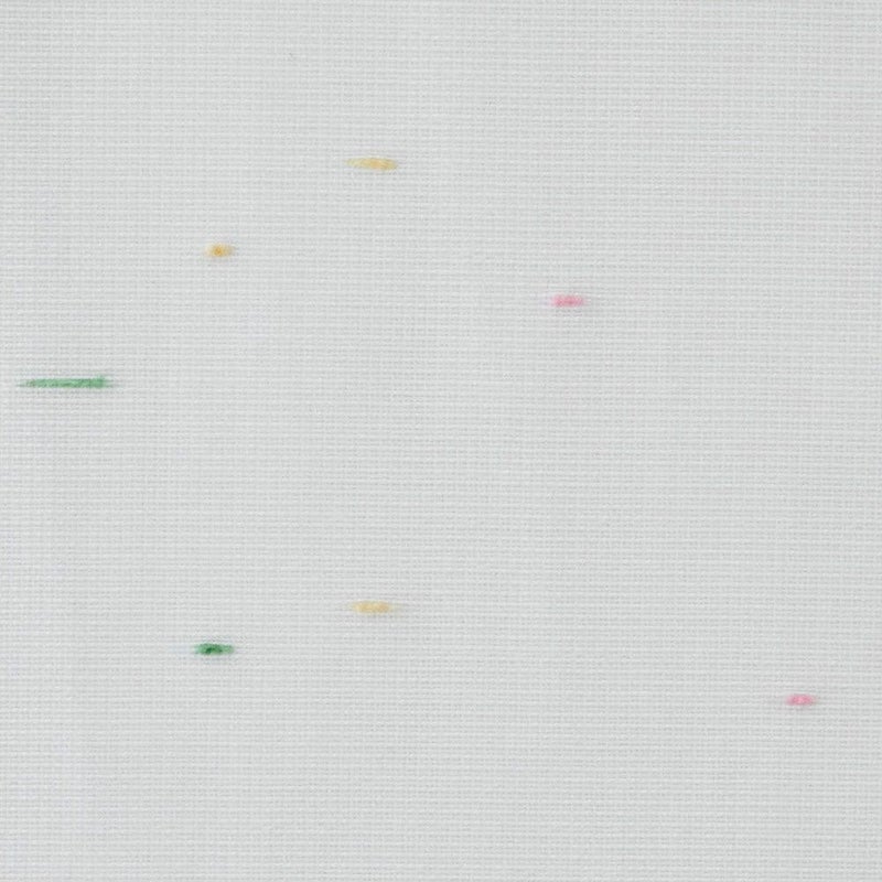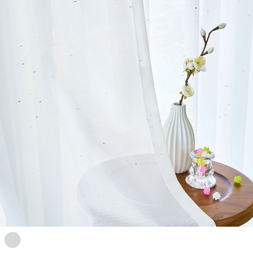 カラフルなネップ糸が、まるで金平糖が散らばったよう。ノスタルジックで懐かしい煌めきを放ちます。金平糖の色には、ピンクは春の桜、黄緑は夏の青葉、黄色は秋の紅葉、白は冬の雪と、四季の移ろいを表現しているそう。 可愛らしいレースカーテンにも、そんな一つ一つ込められた意味を感じてみると素敵です。