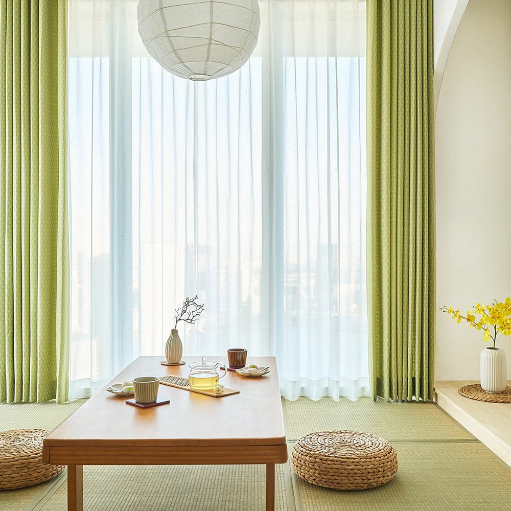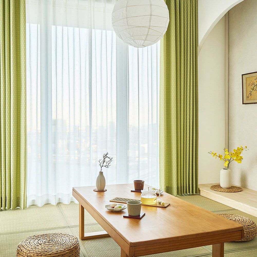 伝統的な落ち着きある和室に、ほんの少しだけ遊び心を忍ばせて。カラフルネップのレースカーテンが、窓辺に小さな彩りを添えて和やかな空間に。和室を優しく軽やかな印象にします。