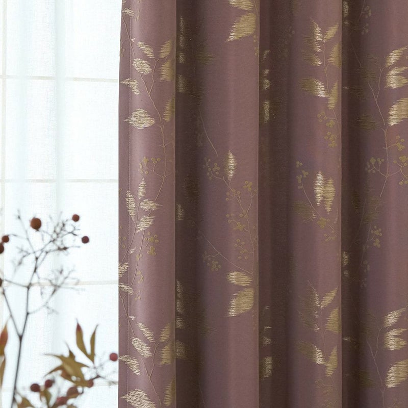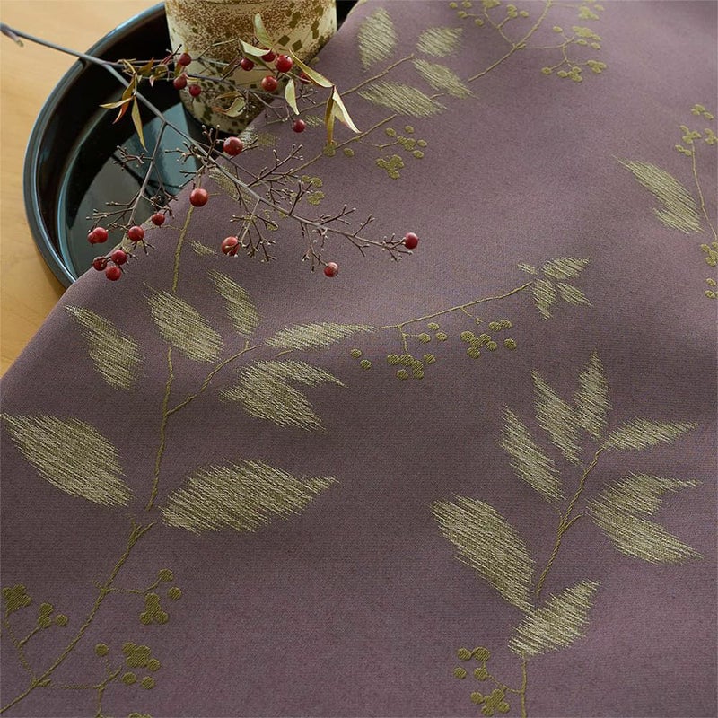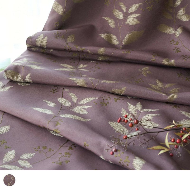 紫式部という山野に生える低木がモチーフ。秋にはしなやかに伸びた小枝に紫の実をつけ、日本の四季を彩る植物です。そんな情緒溢れる植物の姿を美しくカーテンに落とし込みました。