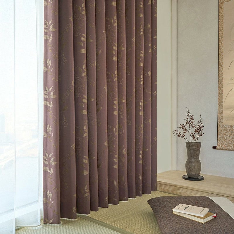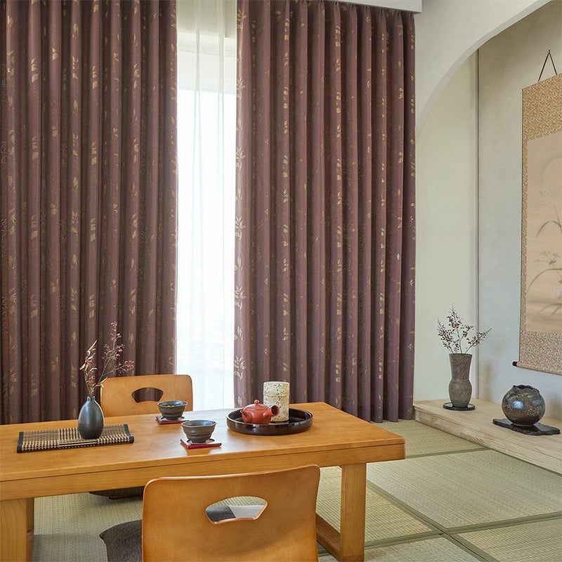 かすれた風合いの小枝と味わい深い赤紫に心惹かれる和のオーダーカーテン。趣あるその佇まいからは、美しさが奥底から滲み出てくるような渋さを空間に与えます。それはまさに日本独自の美意識を持ち得るからこそ、知ることができる魅力。渋みのある和の空間をじっくりと味わいながら、自分だけの時間にそっと浸ってください。