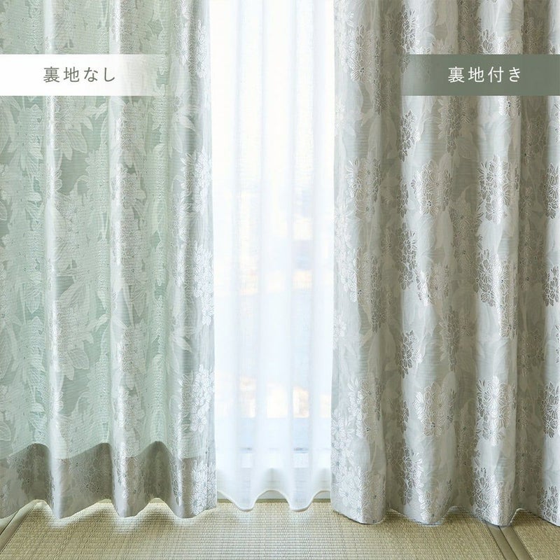非遮光と裏地付きで和室の雰囲気が変わります。非遮光カーテンは陽を遮らず和室を明るい印象に。裏地オプションをお付けいただくと、生地が透けずより美しいデザインをお愉しみいただけます。さらに、1級遮光相当の遮光性を叶え、「表地の日焼けによる劣化から守る」「遮熱・保温性を上げる」といった嬉しい機能が備わります。