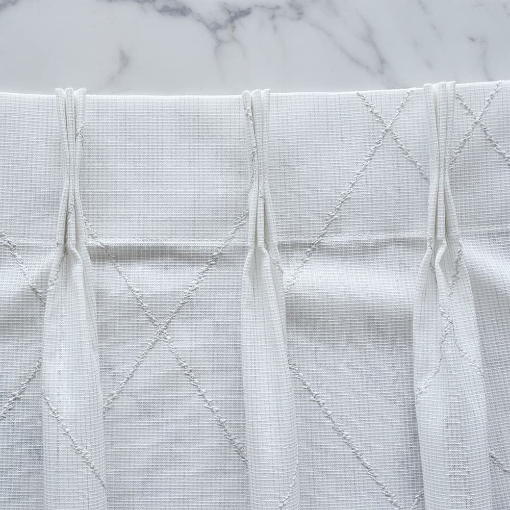 カーテン上部に2つ、または3つの山を作ることで、布に波を持たせ立体的に見せています。