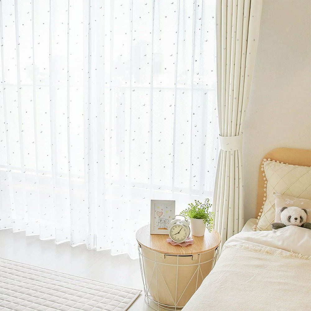 昼も夜も外から室内を見えにくくするレースカーテンです。