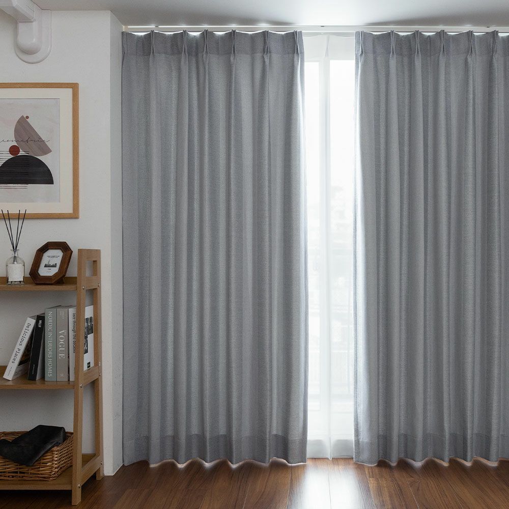 実巾の2倍(2mの場合は4m)の生地を使用し、3つ山のヒダでカーテンを仕上げることです。