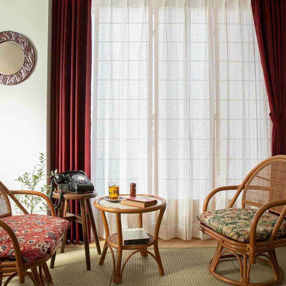 昼も夜も外から室内を見えにくくするレースカーテンです。