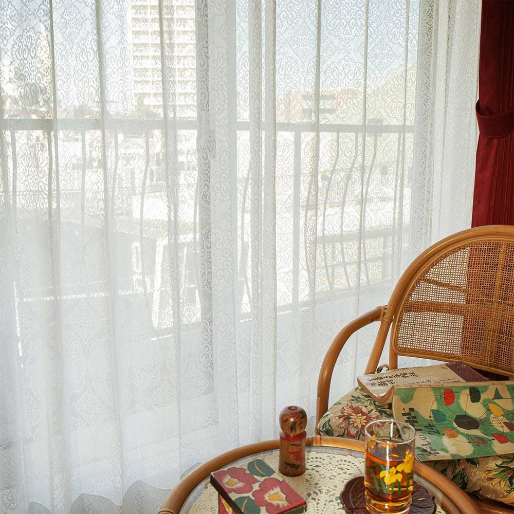 ※外が暗くなるにつれてミラー効果は減少し、夜間は普通のレースカーテンと変わらなくなります。