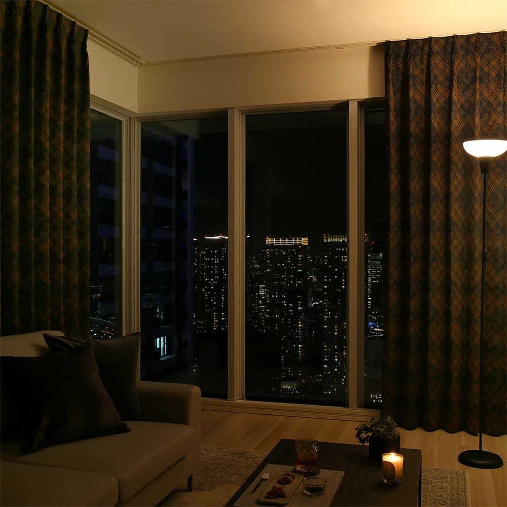 カーテンを閉めると外光が入らず、外へも光を漏らさないのでプライバシーを守ることができます。