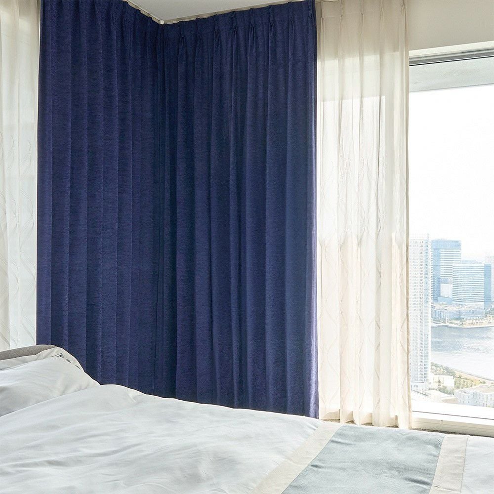 カーテン上部に2つ、または3つの山を作ることで、布に波を持たせ立体的に見せています。