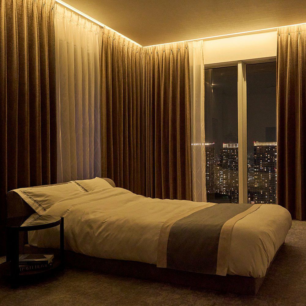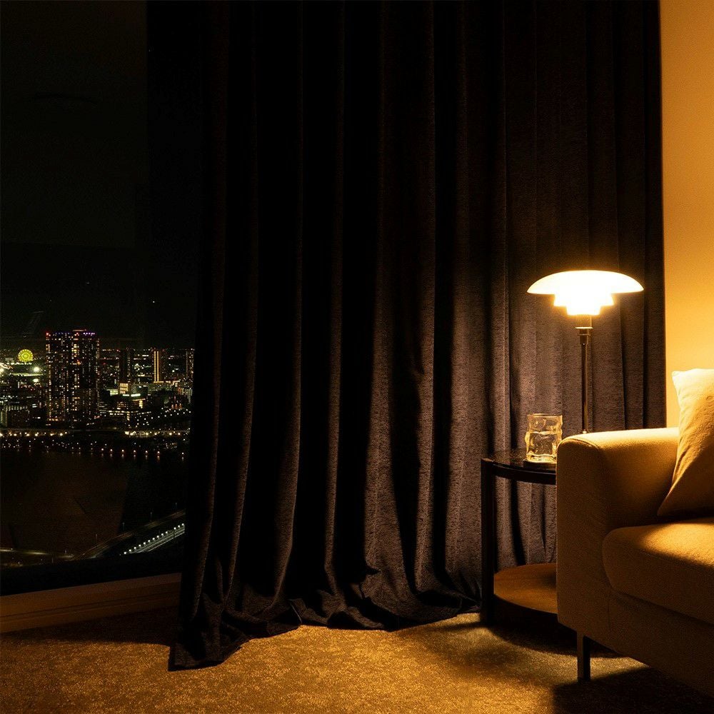 カーテンを閉めると外光が入らず、外へも光を漏らさないのでプライバシーを守ることができます。