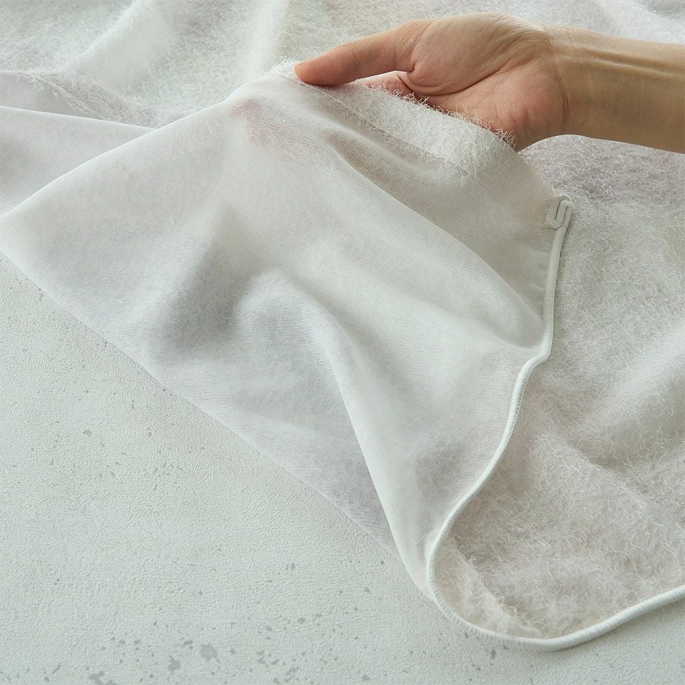極細の糸で平たく織った、軽くやわらかな手触りの生地です。