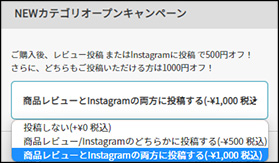 商品レビューとInstagramの両方に投稿するを選択すると1000円割引が適応されます。
