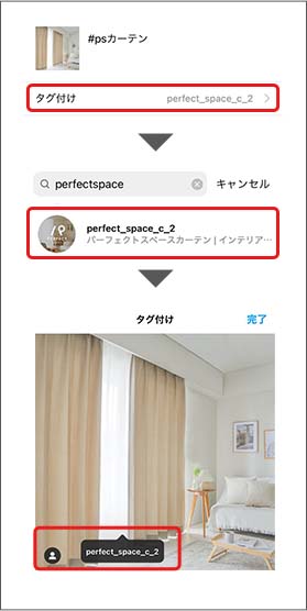 ❷@perfect_space_c_2のアカウントをタグ付け