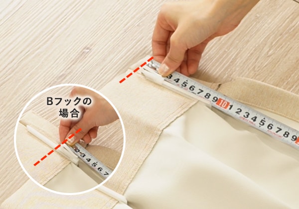 カーテンの高さは、カーテンレールのランナー(フックの穴)から採寸します。
