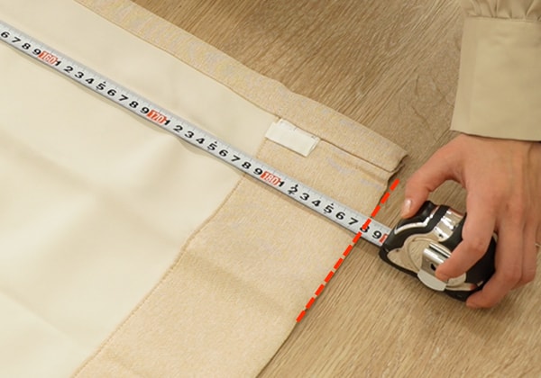 レールから床まで測り、裾を引きずらないよう床から-1cmします。