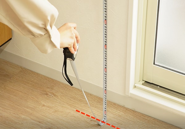 メジャーを床まで持っていき、長さを測ります。