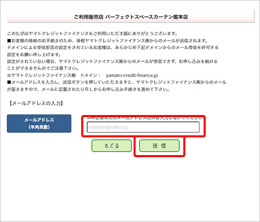 メールアドレスをご入力頂き、「送信」ボタンを押してください。
