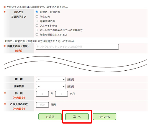 お願い致します。 - ⑤勤務先・学校情報の入力