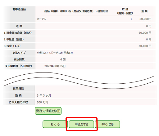 ※ご入力内容に誤りなどがあった場合、審査が通らない場合もございます。 - ⑧お申込み完了