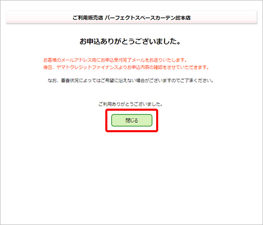 審査完了のご連絡と共にご注文確定のご連絡を致します。