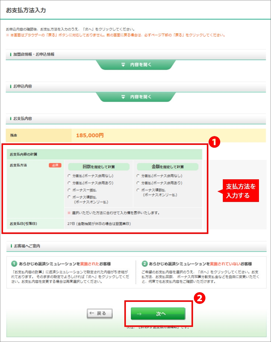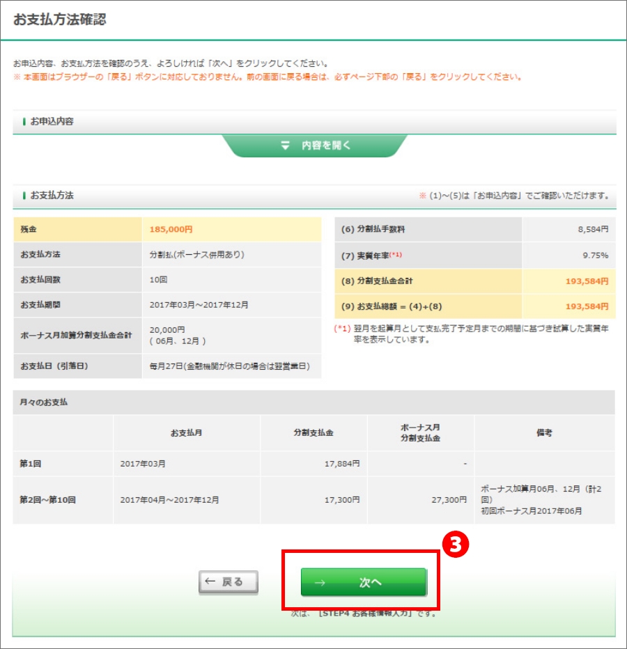 また月々の支払金額が3,000円以上となるように回数設定が必要です。