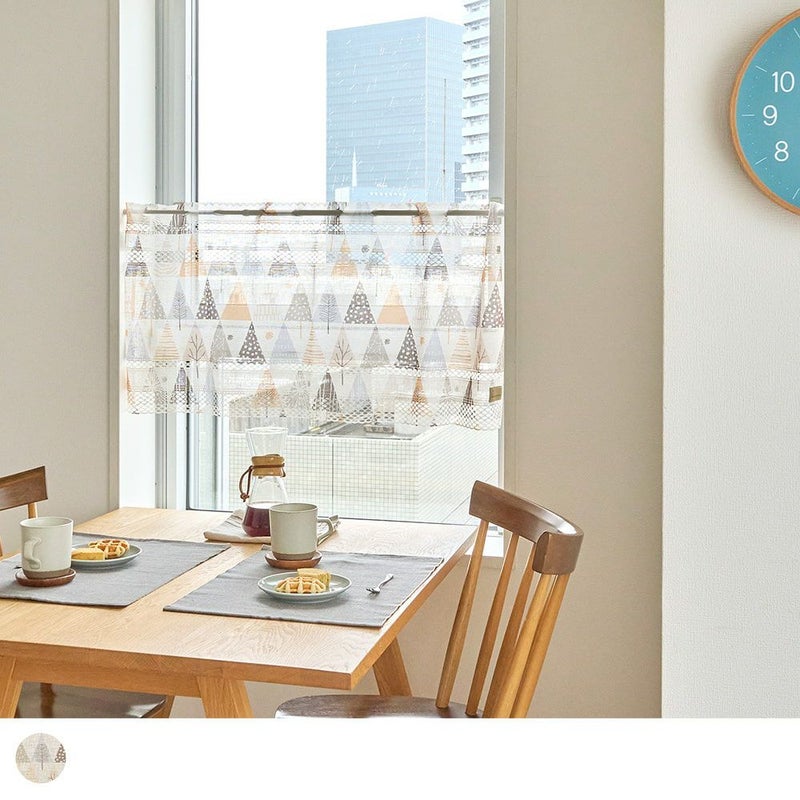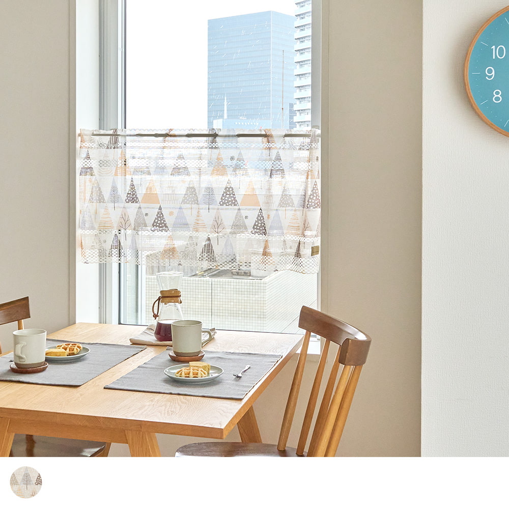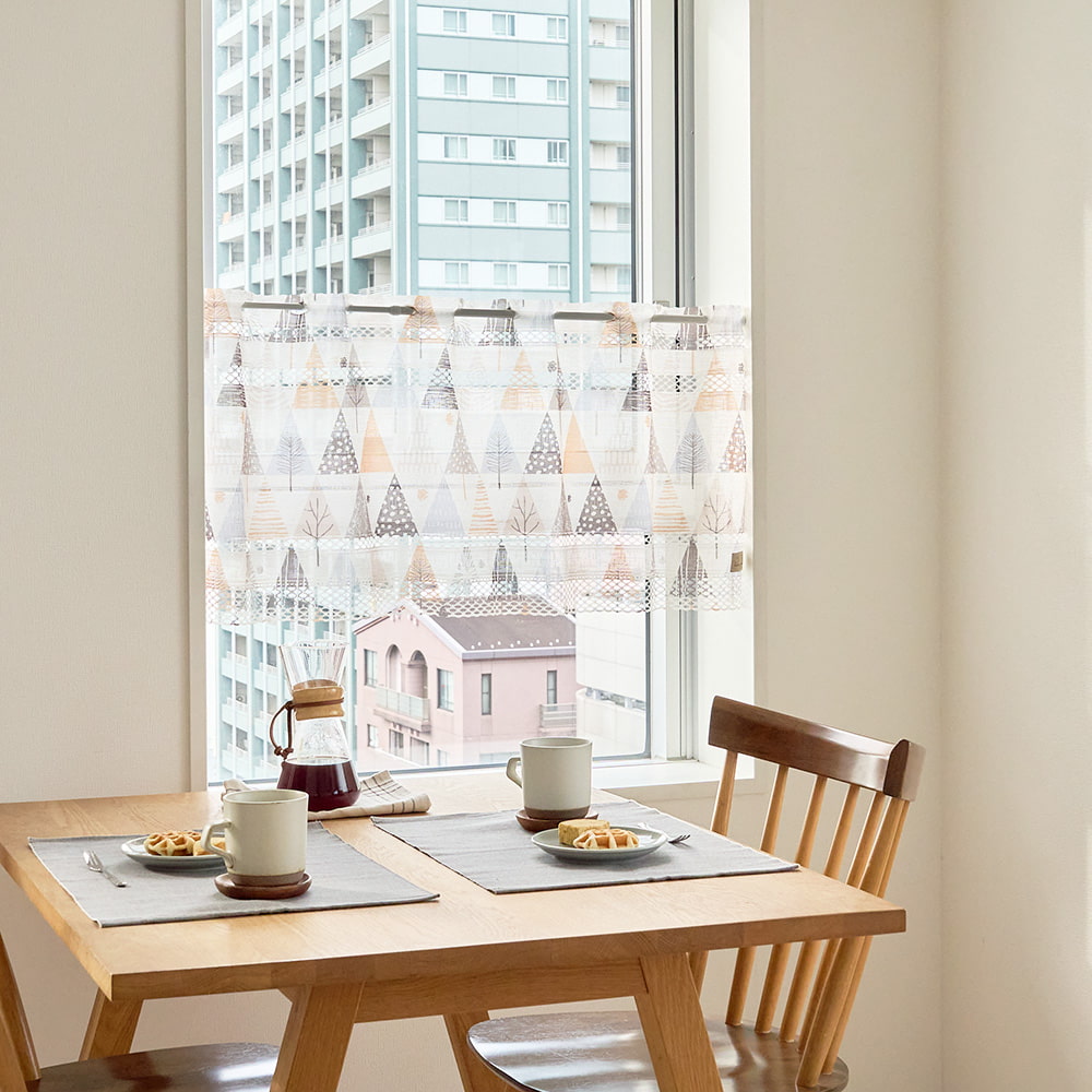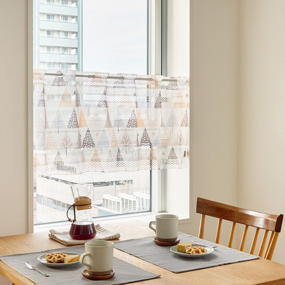 北欧テイストの森モチーフがかわいい、軽やかなカフェカーテンです。