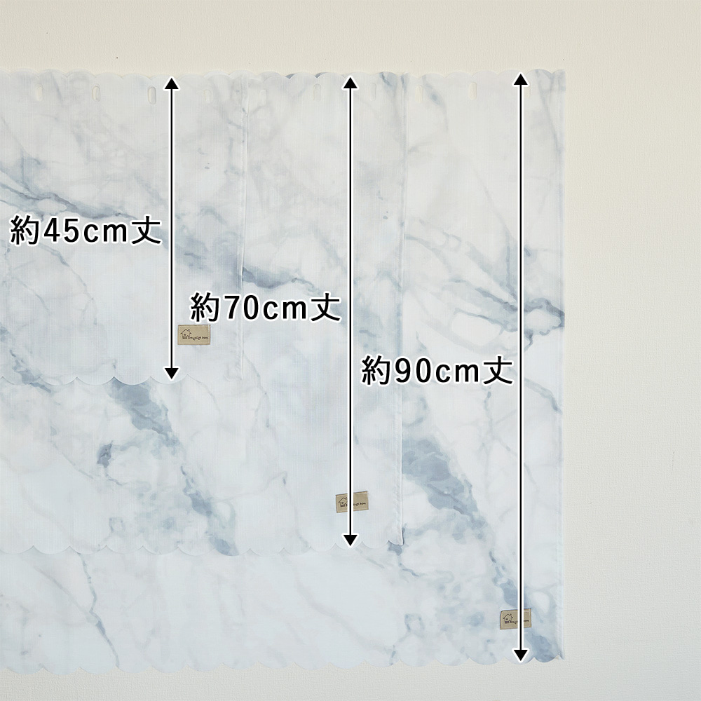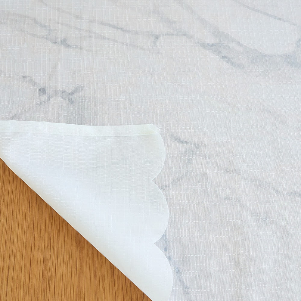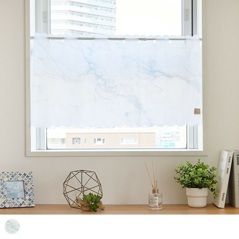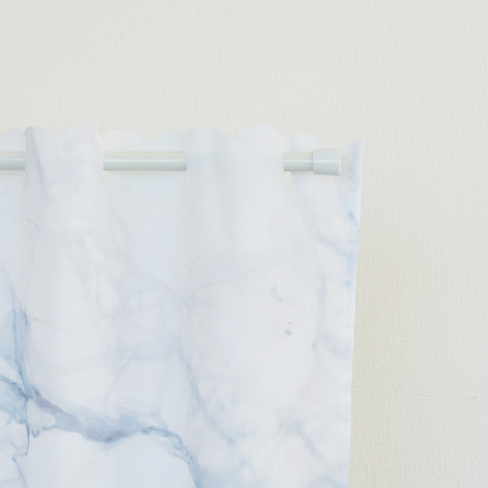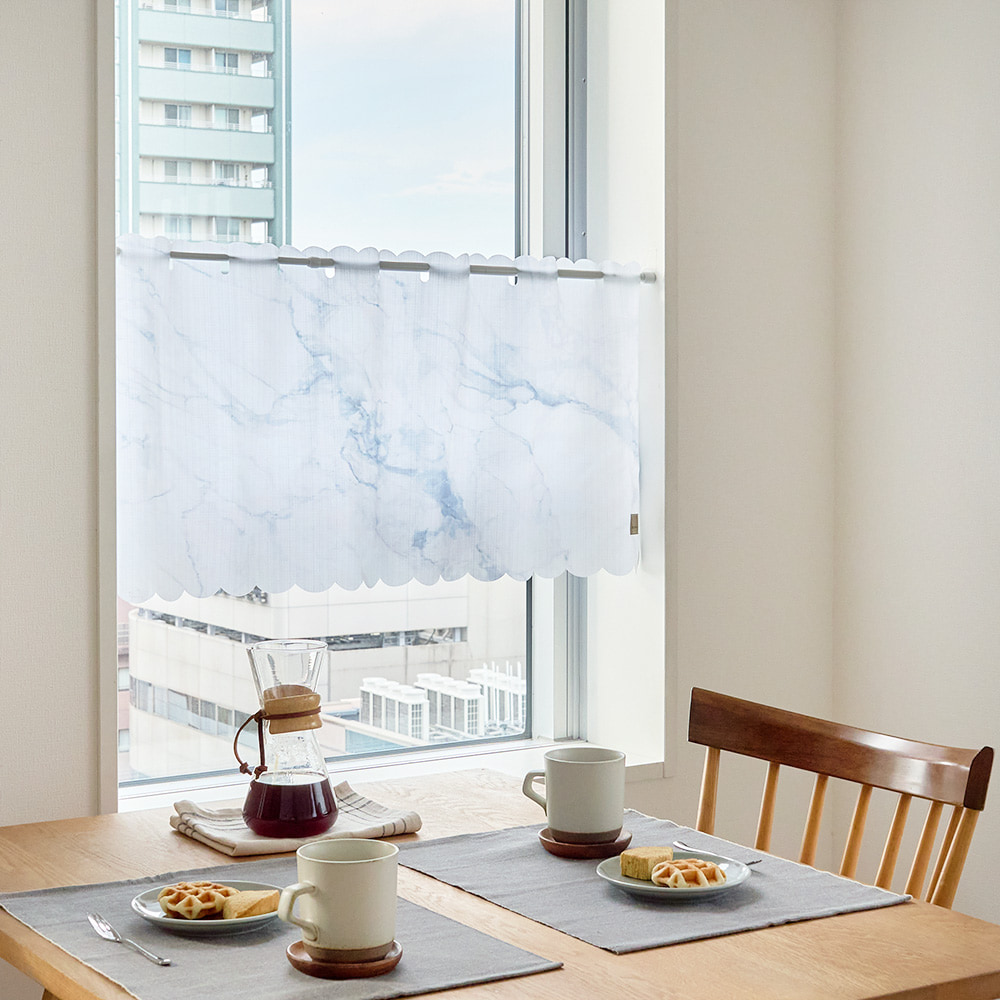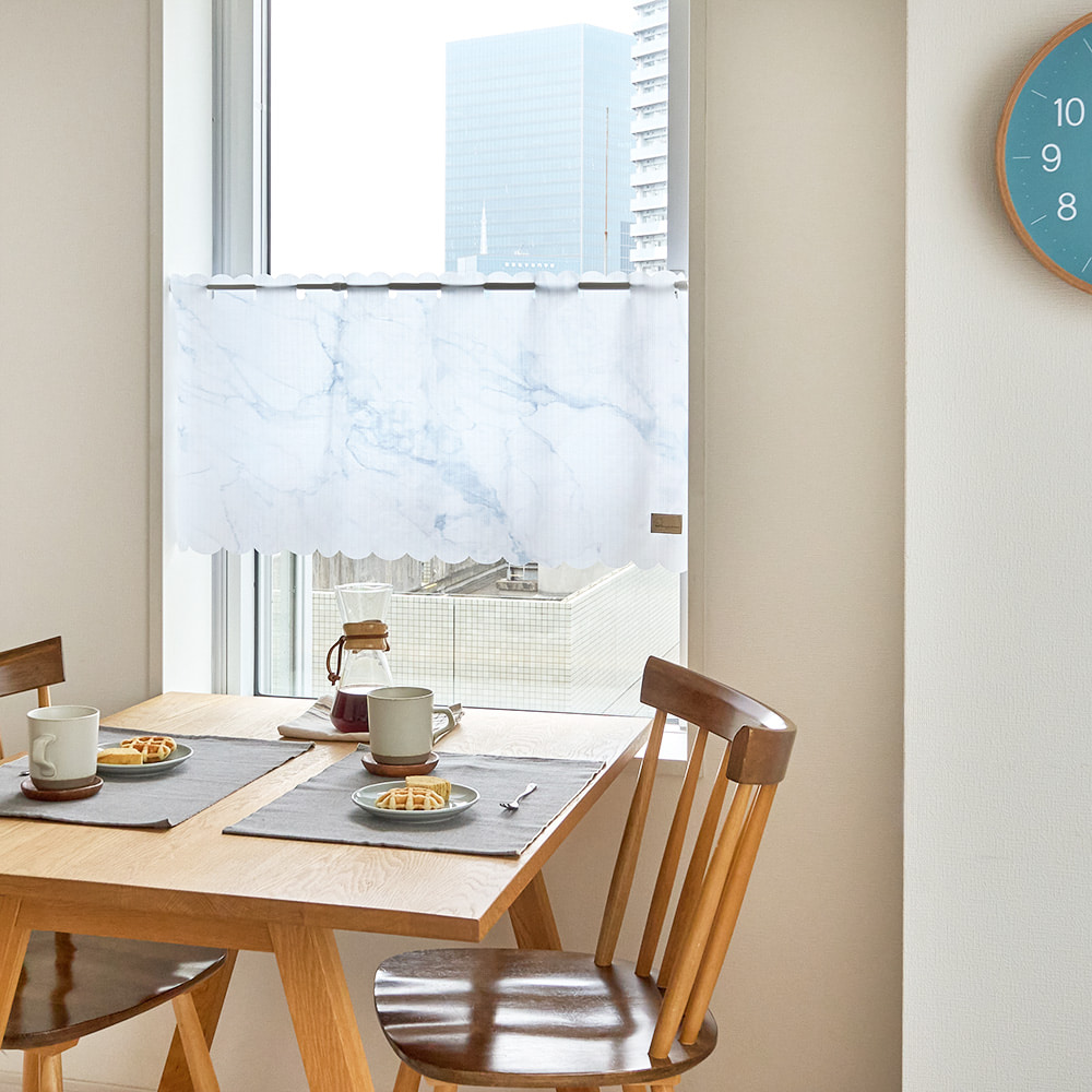 大理石のようなマーブル模様が美しい、洗練された雰囲気のカフェカーテンです。