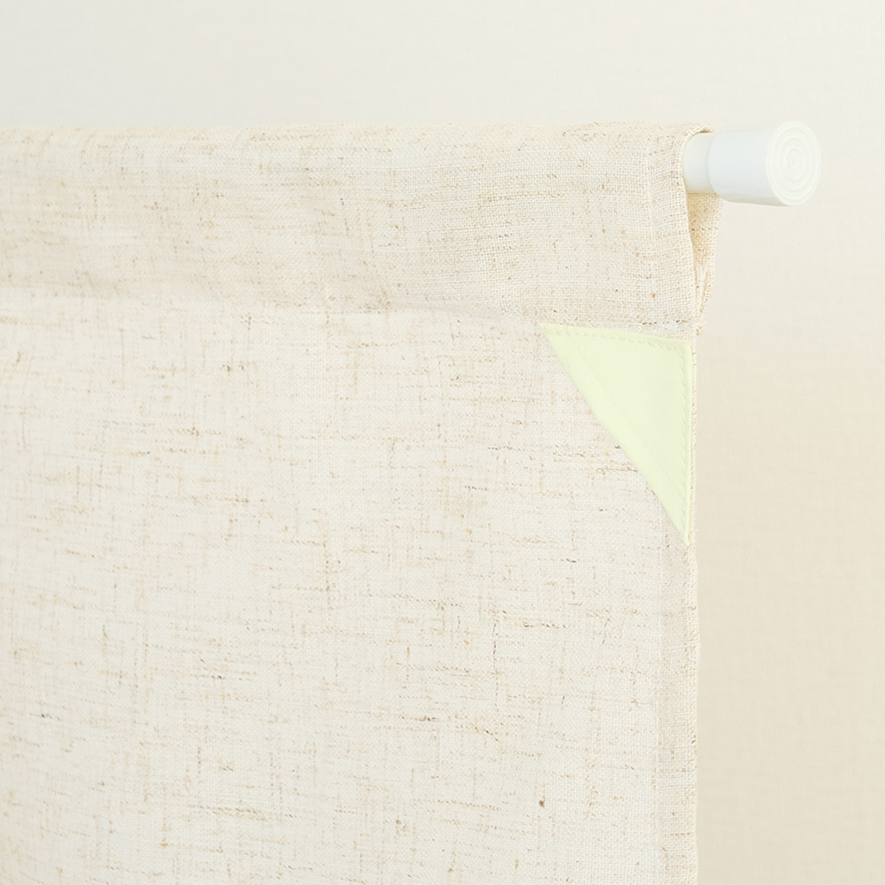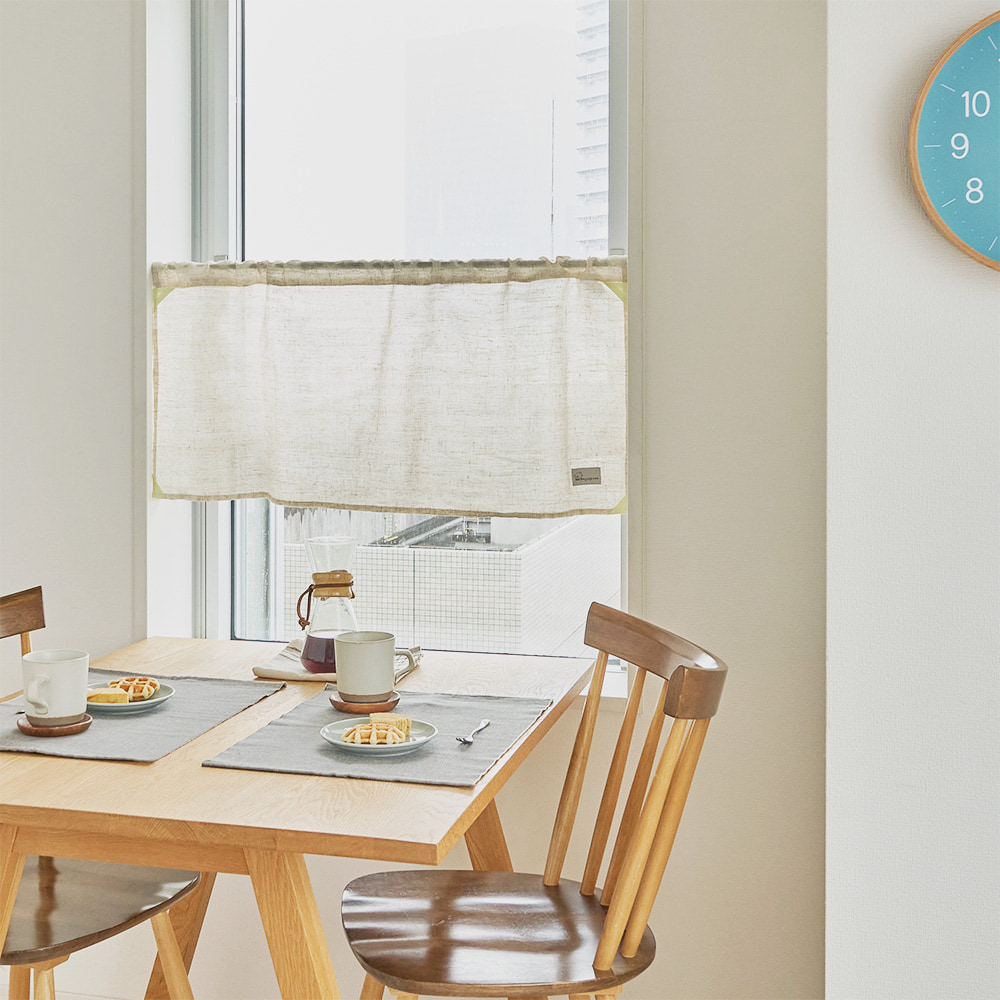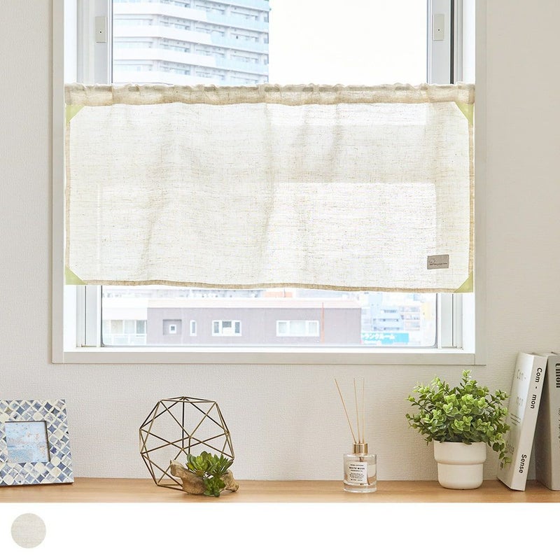 ナチュラルな風合いにやさしい光をプラスした蓄光タイプのカフェカーテンです。昼間に光を蓄え、夜になるとふんわりとやさしい光を放ちます。やわらかな生成り調の生地はどんな空間にもなじみやすく、キッチンやリビング、玄関など、目隠ししたい場所やインテリアとして楽しみたい方にぴったりの一枚です。