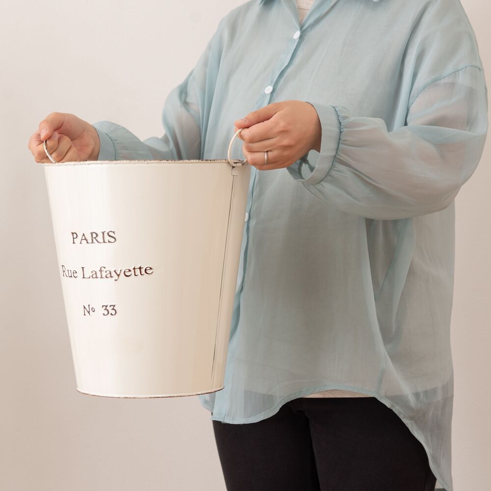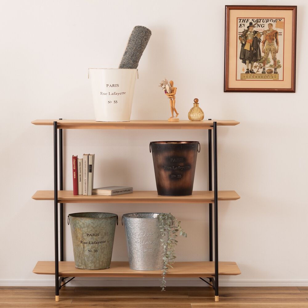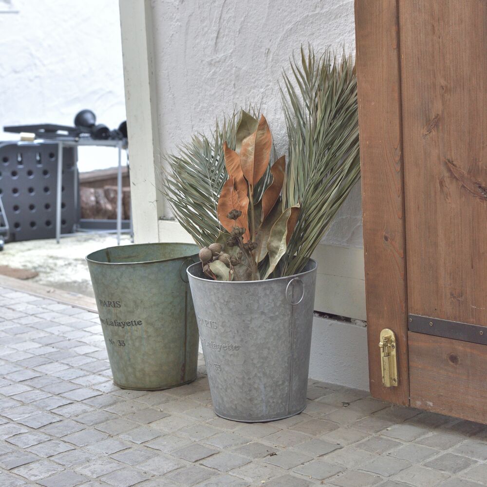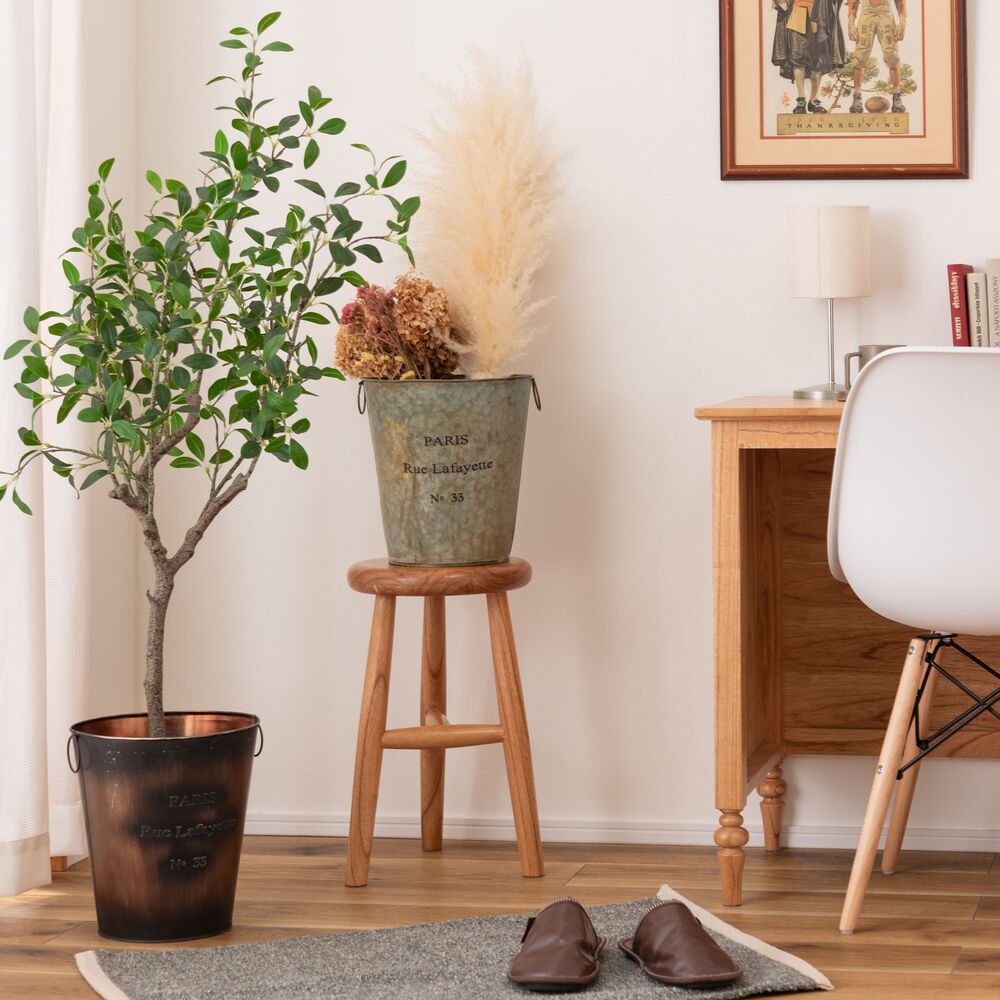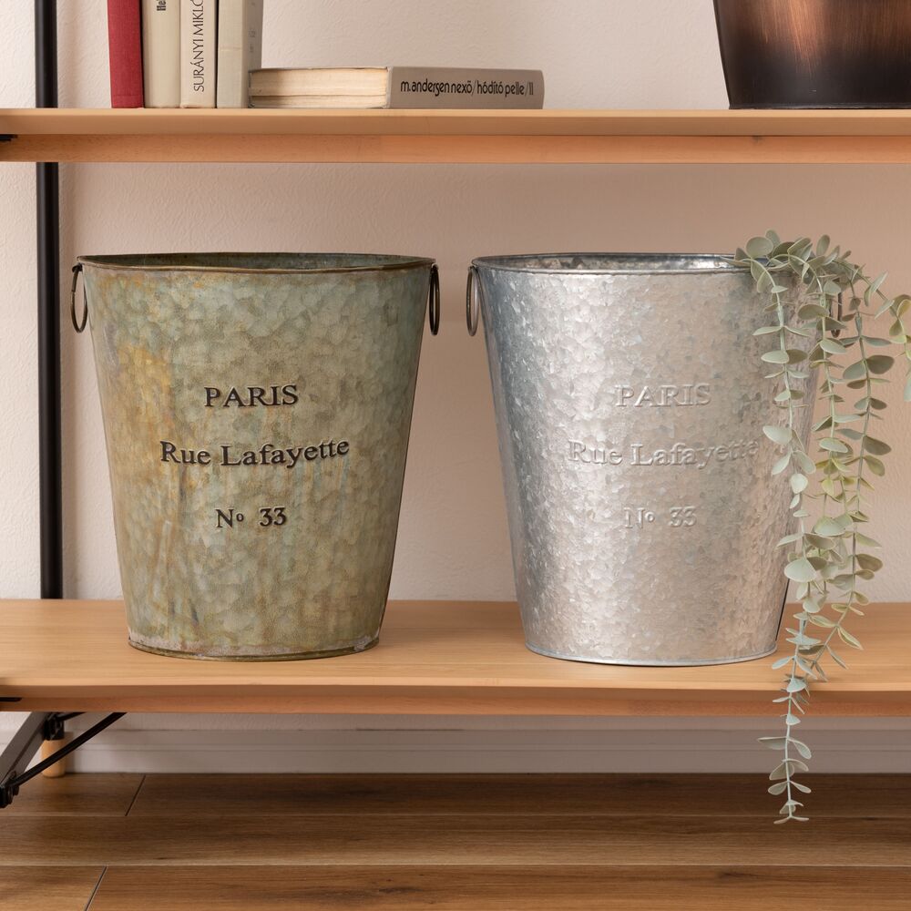 両サイドのリングは植物や小物のディスプレイにも活躍し、使い方の幅が広がる収納バケツです。