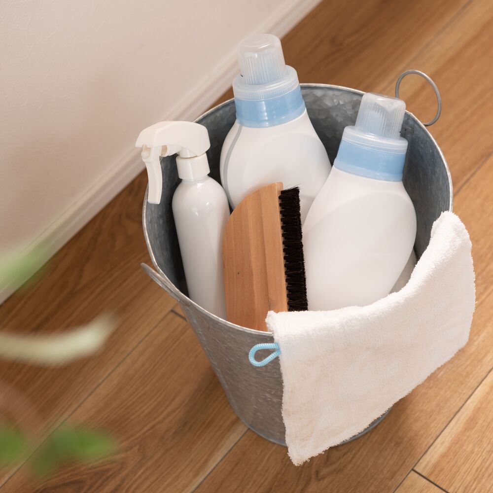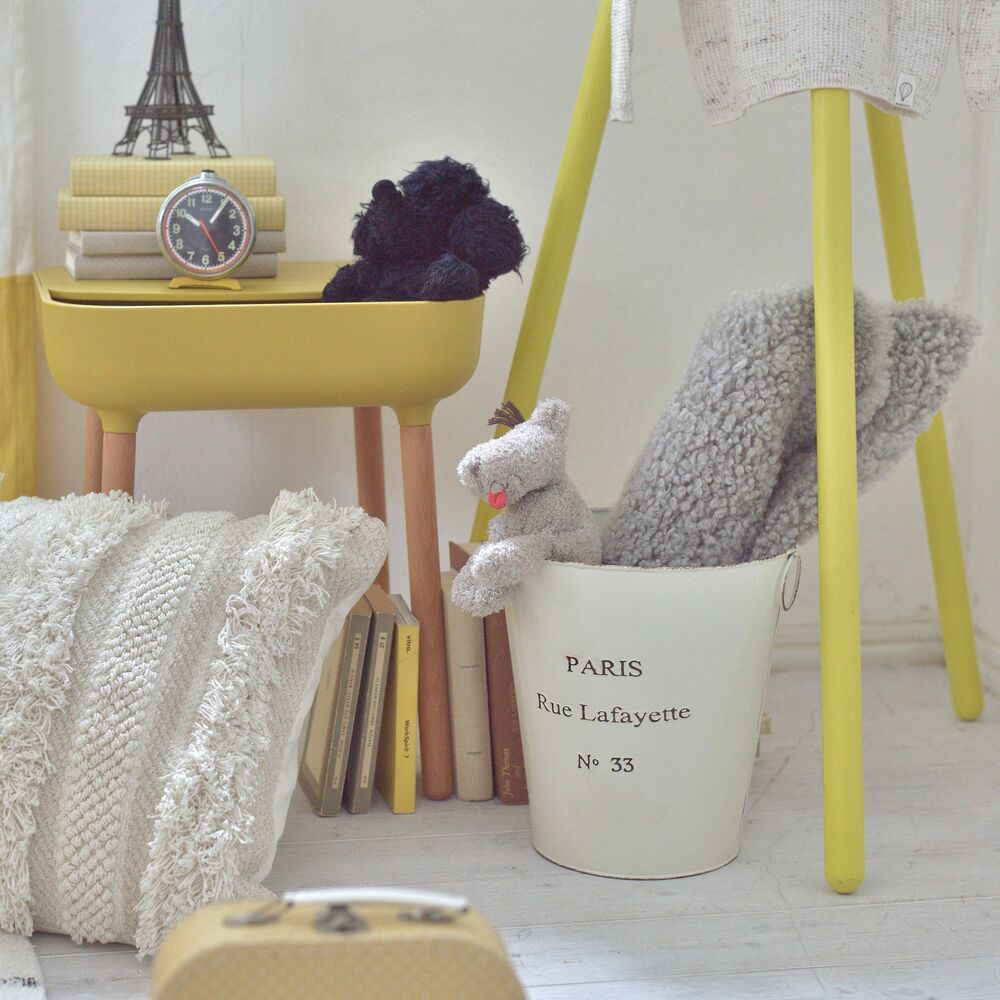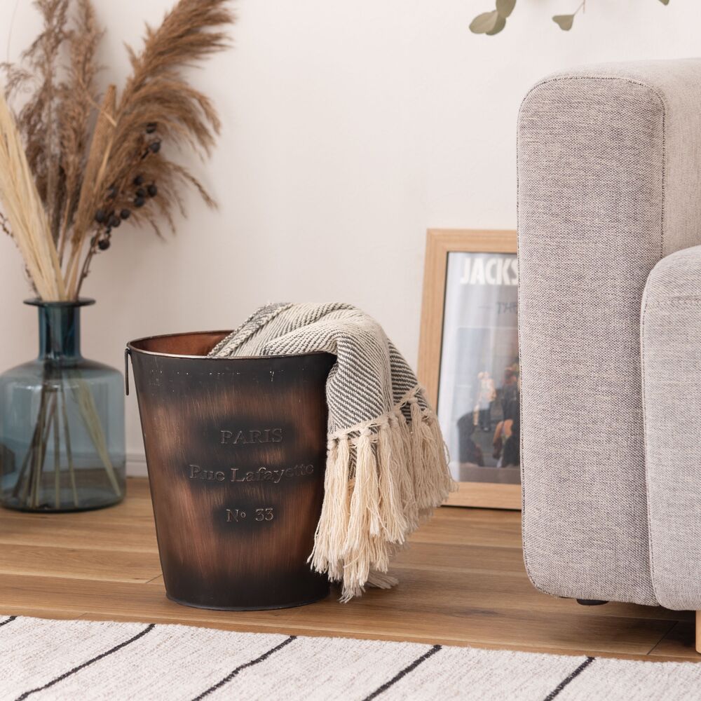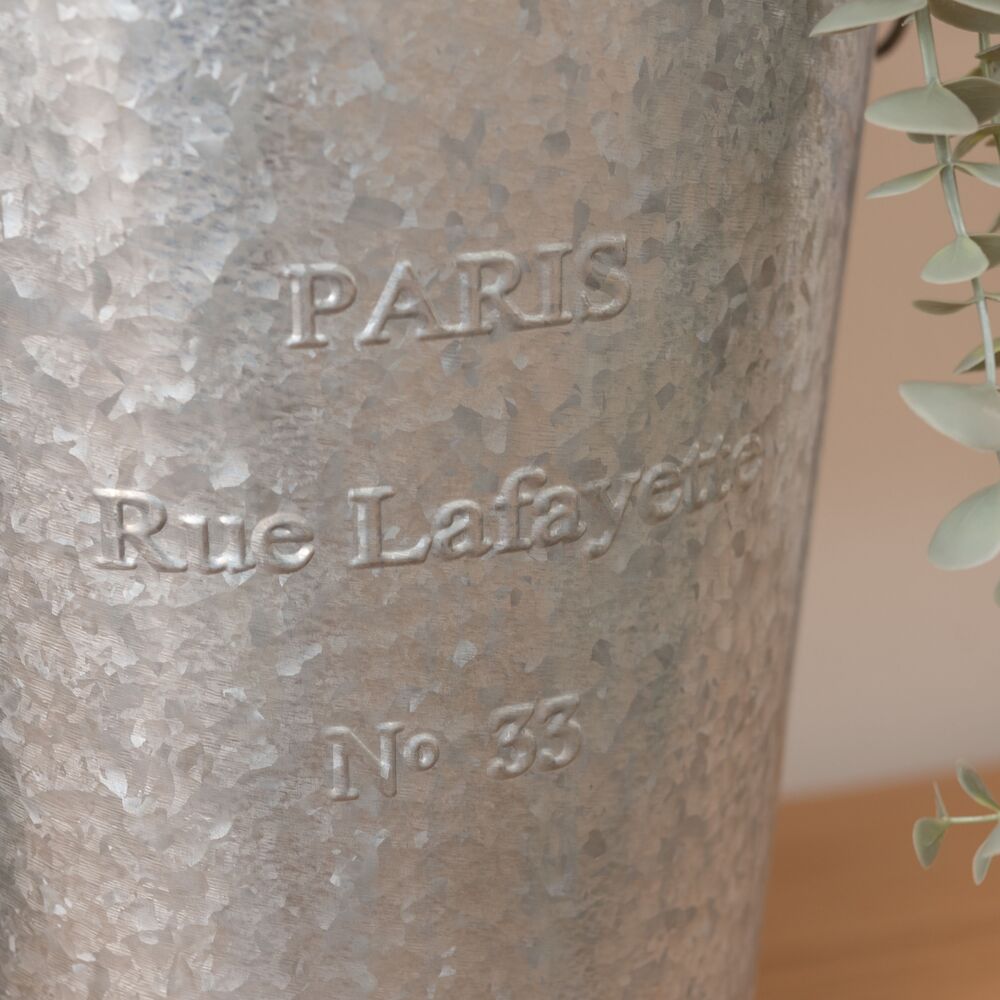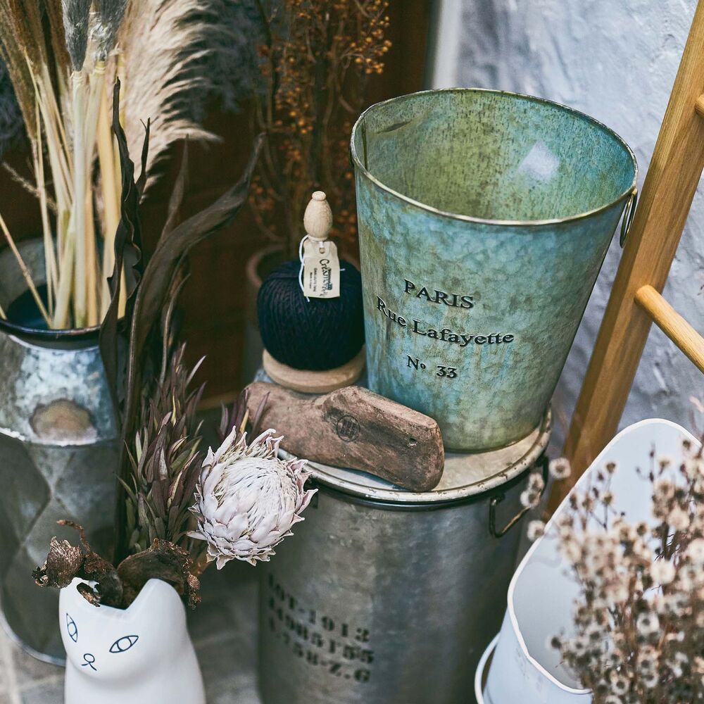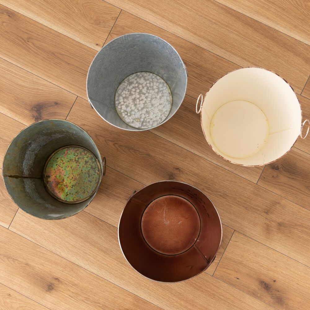 両サイドのリングは植物や小物のディスプレイにも活躍し、使い方の幅が広がる収納バケツです。