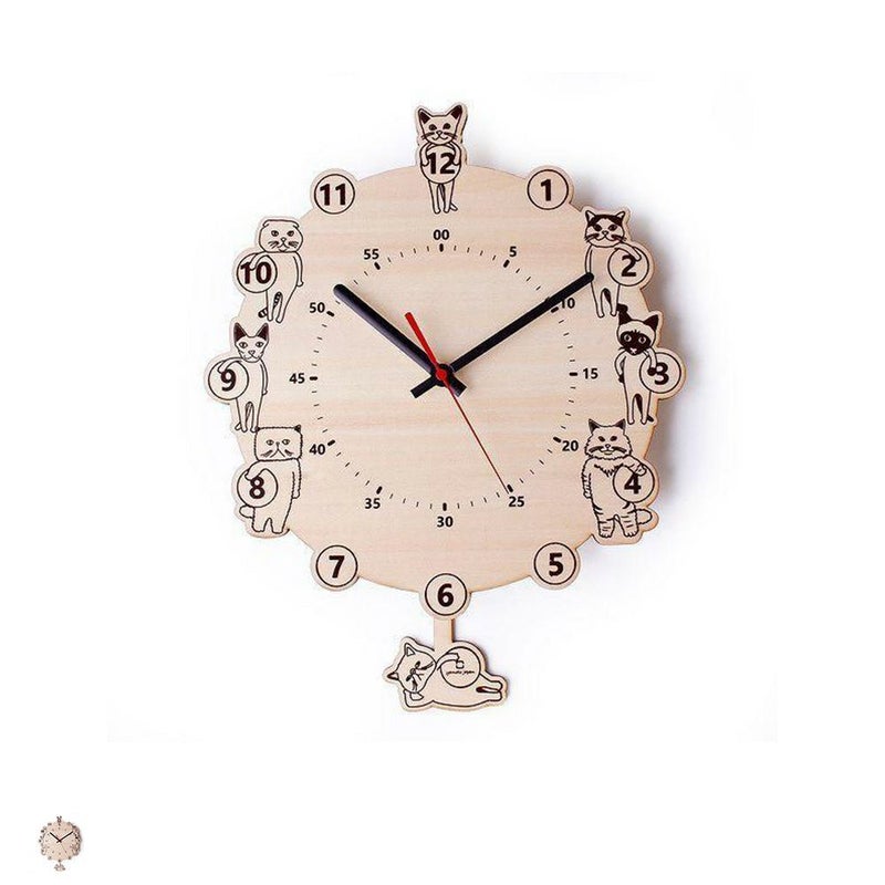 るたびにクスッと笑顔がこぼれてしまいそうなネコモチーフの壁掛け時計です。