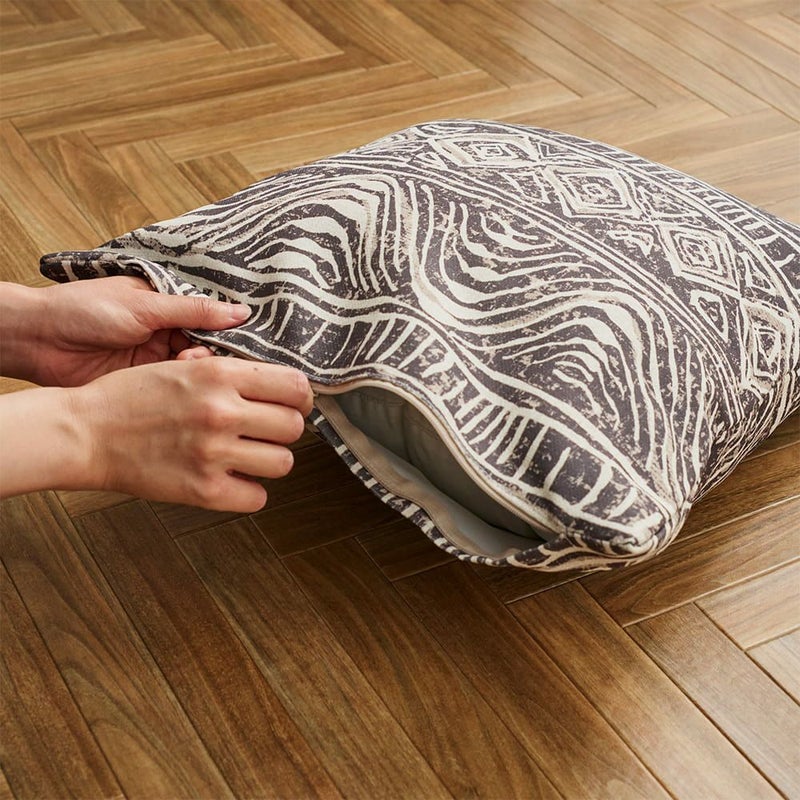 ファスナー仕様で出し入れも楽に。洗濯可の生地なのでお洗濯も簡単です! ※クッション中材は付属しておりません。45×45cmの中材を別途お買い求め下さい。