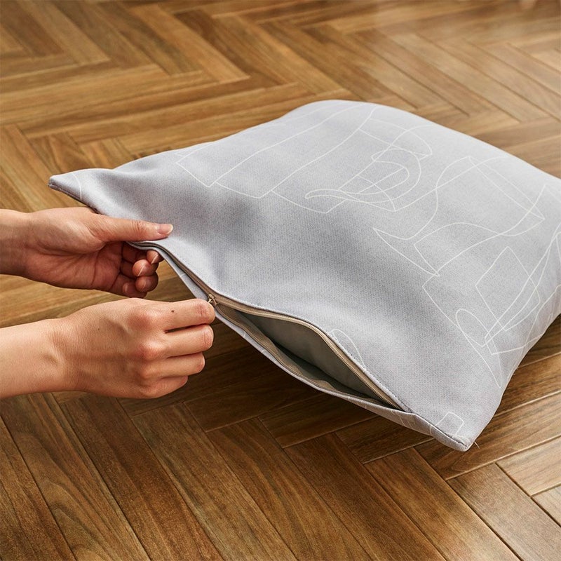 ファスナー仕様で出し入れも楽に。洗濯可の生地なのでお洗濯も簡単です! ※クッション中材は付属しておりません。45×45cmの中材を別途お買い求め下さい。