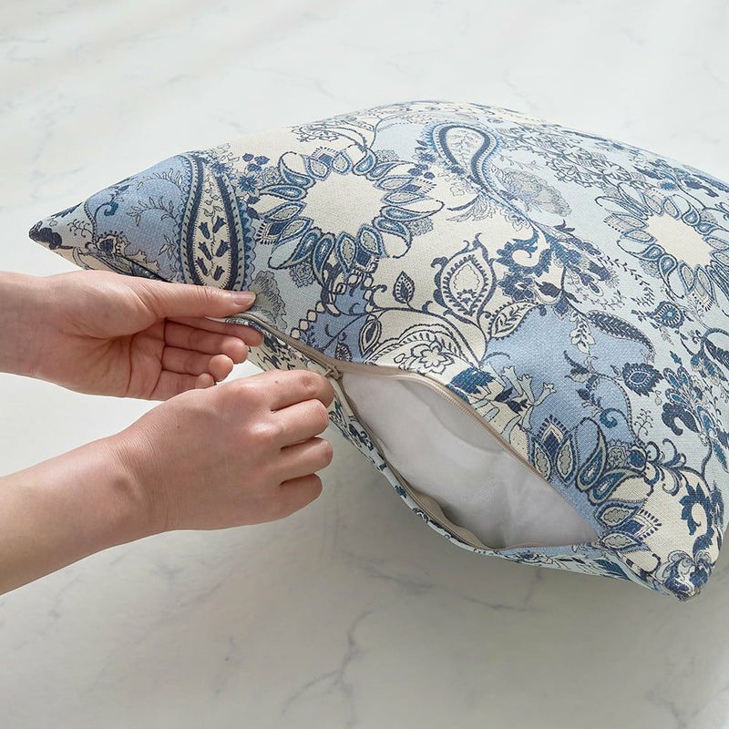 ファスナー仕様で出し入れも楽に。洗濯可の生地なのでお洗濯も簡単です! ※クッション中材は付属しておりません。45×45cmの中材を別途お買い求め下さい。