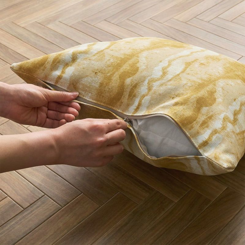 ファスナー仕様で出し入れも楽に。洗濯可の生地なのでお洗濯も簡単です! ※クッション中材は付属しておりません。45×45cmの中材を別途お買い求め下さい。