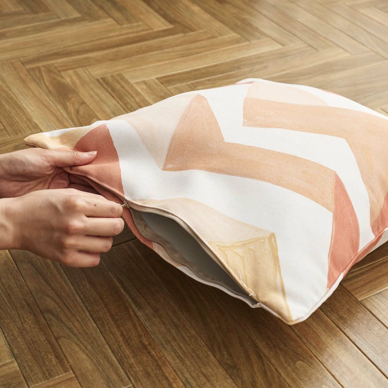 ファスナー仕様で出し入れも楽に。洗濯可の生地なのでお洗濯も簡単です! ※クッション中材は付属しておりません。45×45cmの中材を別途お買い求め下さい。