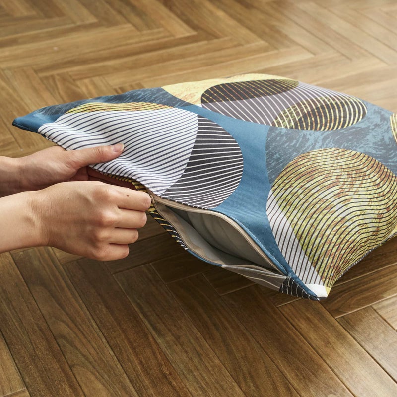 ファスナー仕様で出し入れも楽に。洗濯可の生地なのでお洗濯も簡単です! ※クッション中材は付属しておりません。45×45cmの中材を別途お買い求め下さい。