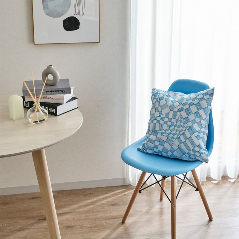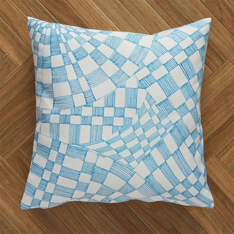 海外のスタジオから仕入れたデザインをカーテンとして落とし込んだ、スペシャルなアートカーテンの同柄クッションカバーです。不規則なチェック柄を捻じ曲げたような複雑なデザインが、見た人の興味を強く惹きつけます。ハイセンスな韓国風インテリアとのコーディネートで個性を底上げ。