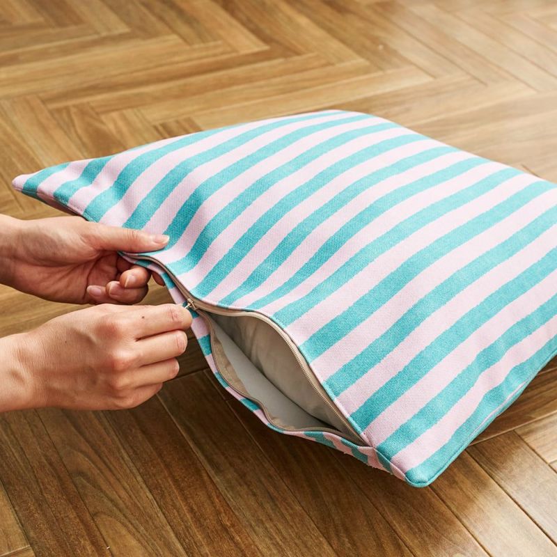 ファスナー仕様で出し入れも楽に。洗濯可の生地なのでお洗濯も簡単です! ※クッション中材は付属しておりません。45×45cmの中材を別途お買い求め下さい。