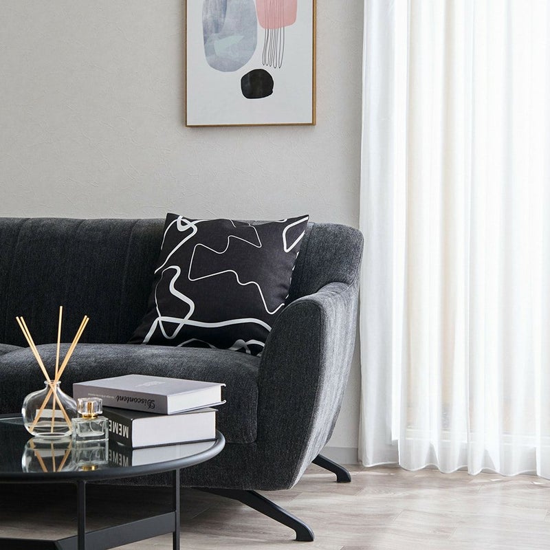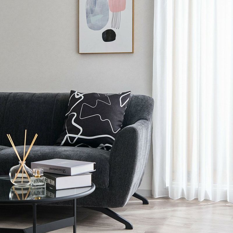 大胆なモダンアートカーテンと同柄クッションカバー