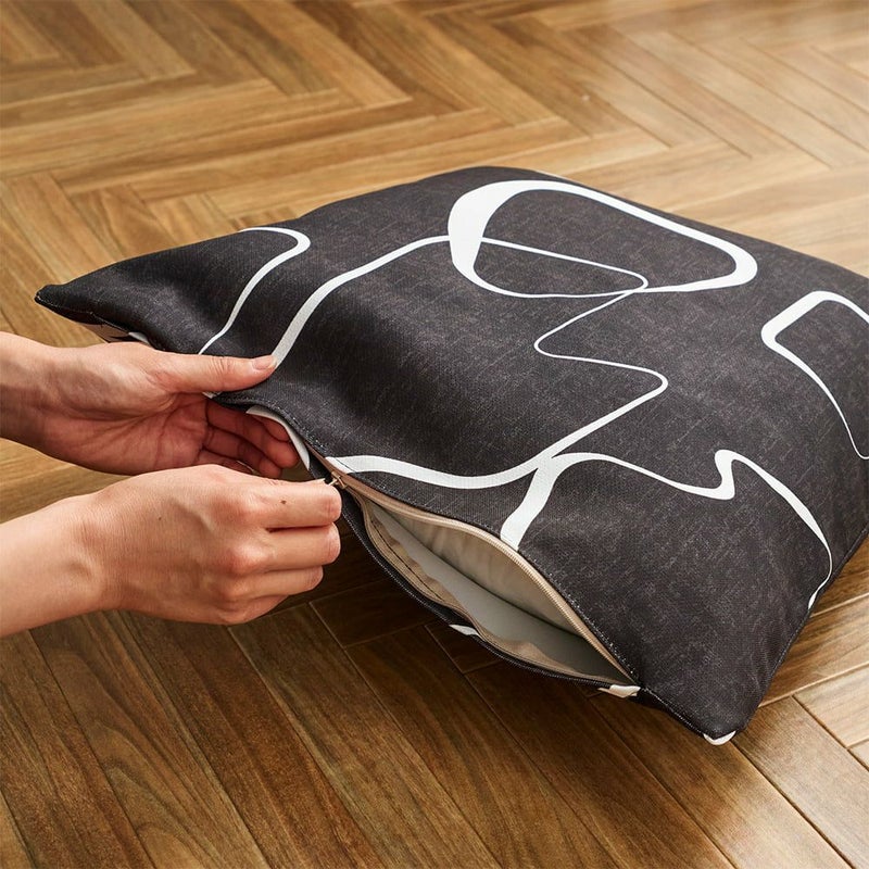 ファスナー仕様で出し入れも楽に。洗濯可の生地なのでお洗濯も簡単です! ※クッション中材は付属しておりません。45×45cmの中材を別途お買い求め下さい。