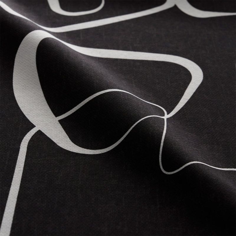 シンプルな空間に映える、大柄のモダンアートチックな当店オリジナルカーテンと同柄クッションカバーです。 一見適当かのように見える力加減のまばらなラインデザインは、不思議な魅力を感じさせます。 空間のアイキャッチとしての役割も担う、アートな1枚です。