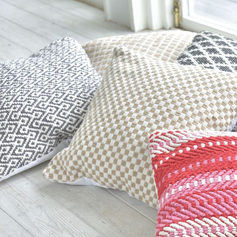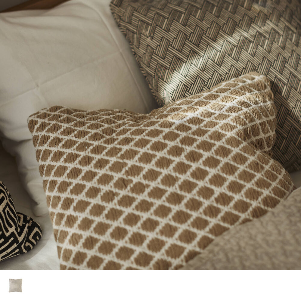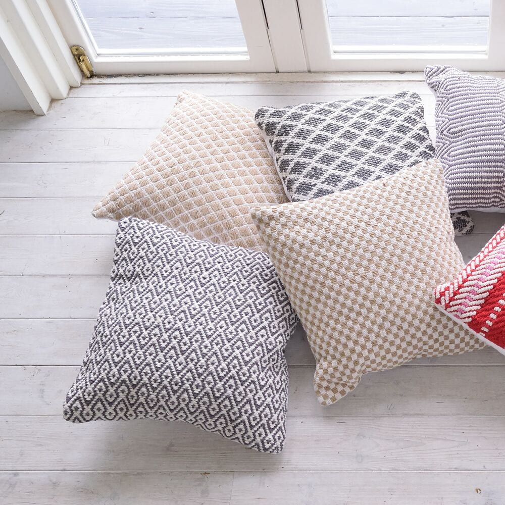 ふんわり柔らかい雰囲気のダイヤモンド柄のクッションです。