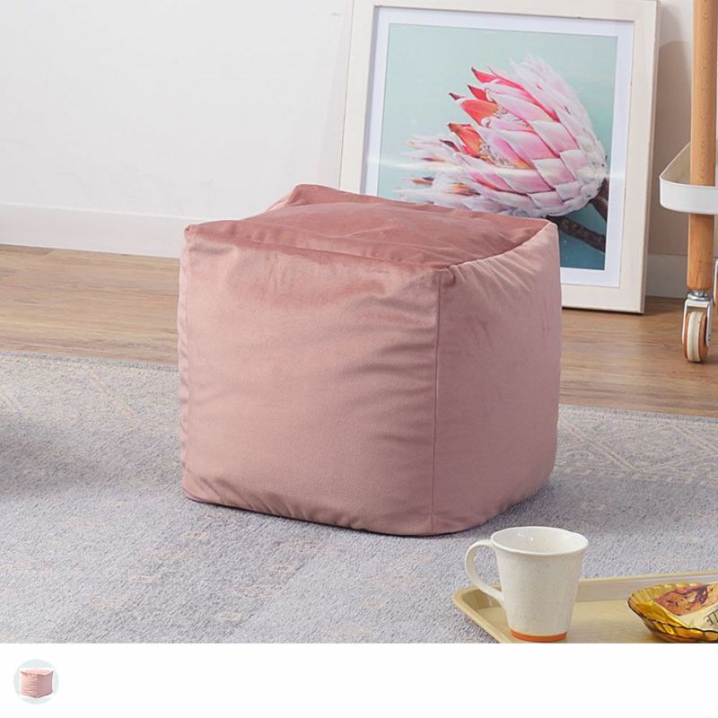 もちもちとしたマイクロビーズと、なめらかなベロア調の生地が心地よいキューブクッション。