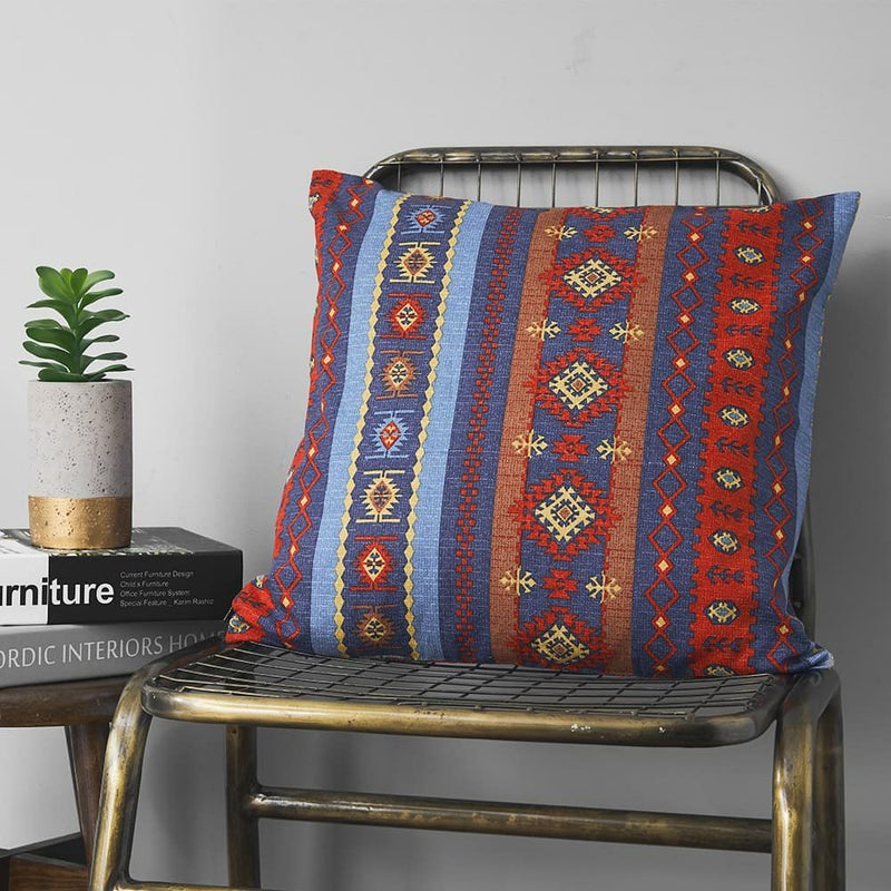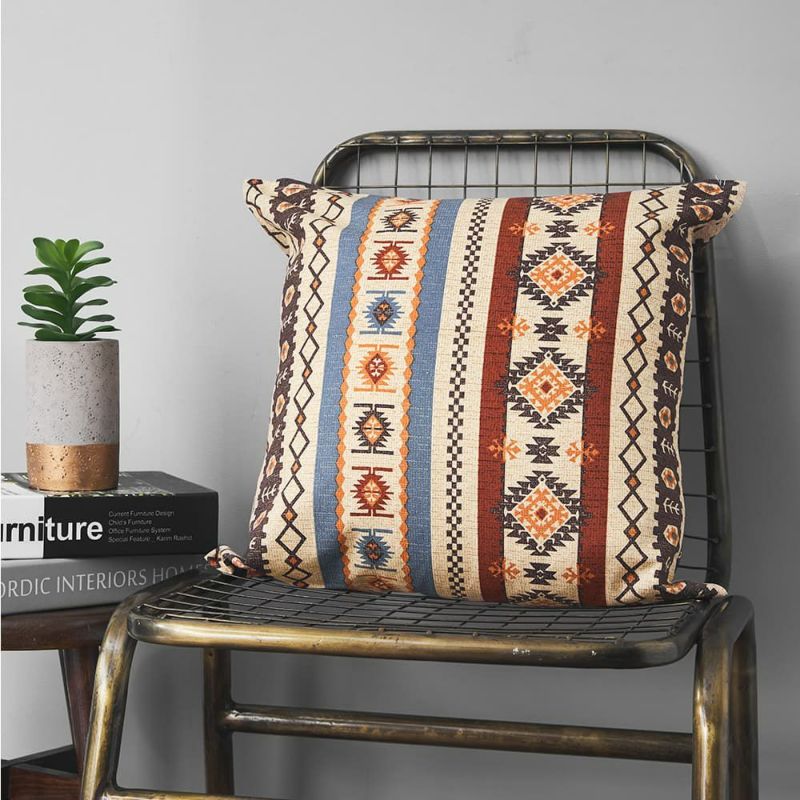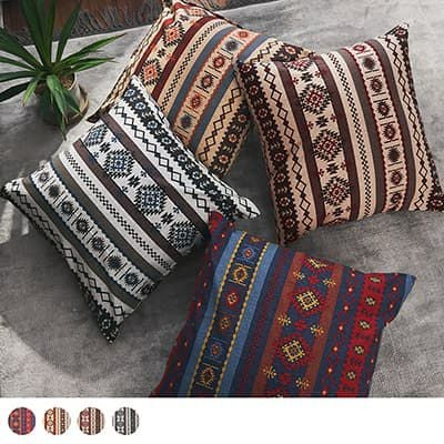落ち着いた大人の民族調デザインカーテン生地が、クッションカバーになって登場しました。