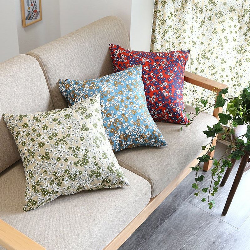 デイジー・ポップのカーテンと同じ生地のクッションカバーです。